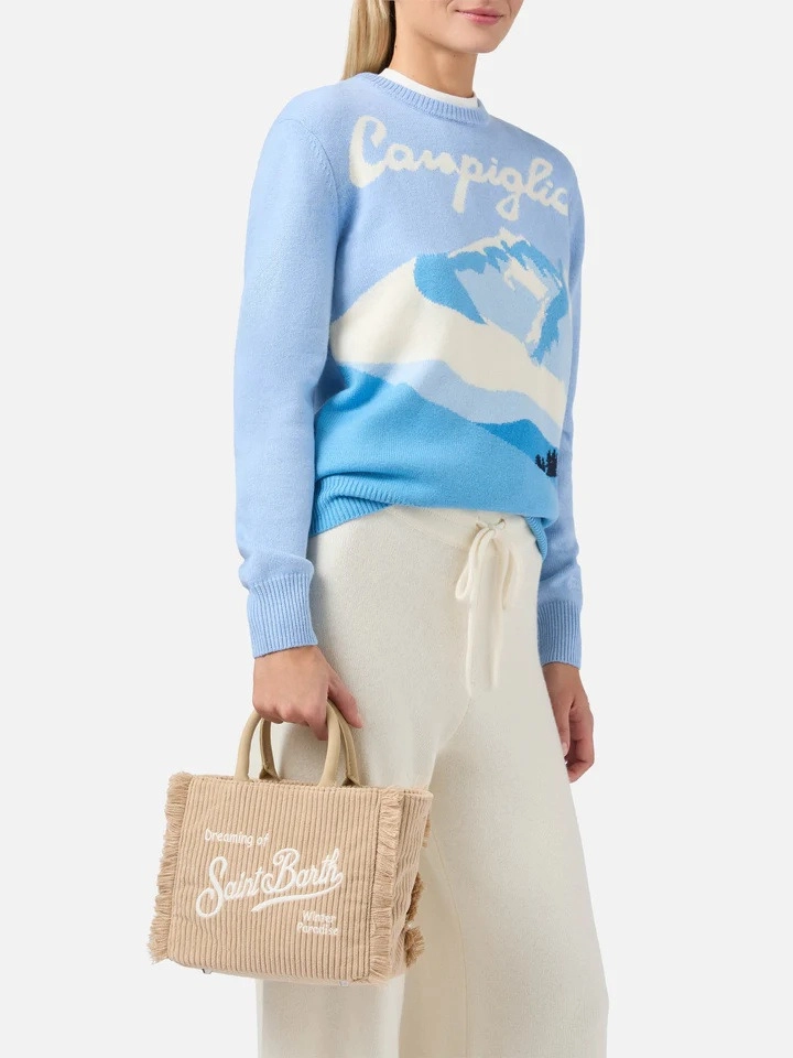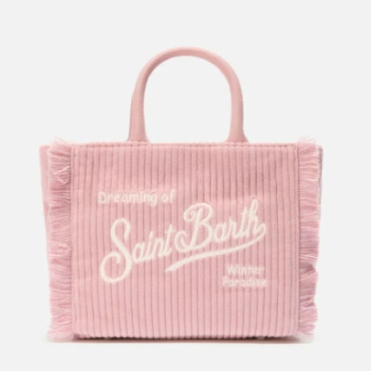 Borsa a mano Vanity Mini Corduroy in velluto a coste e faux suede rosa