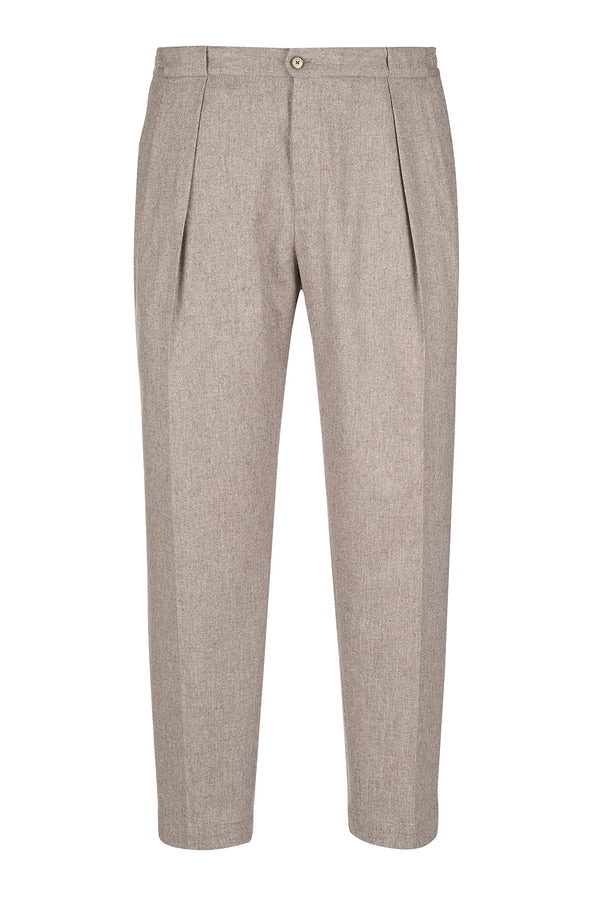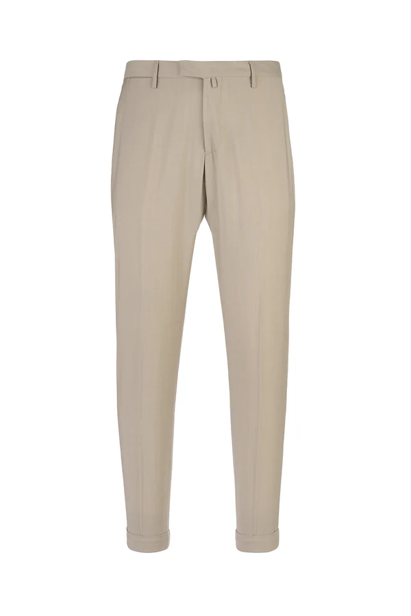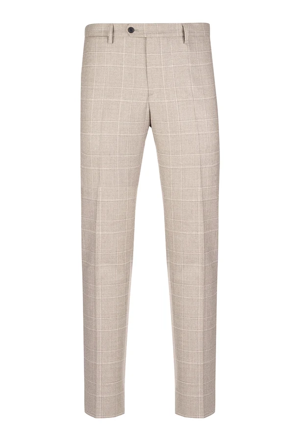 Pantalone Tasca America, con chiusura zip e bottone di sicurezza, 100% lana, fantasia beige in Galles.